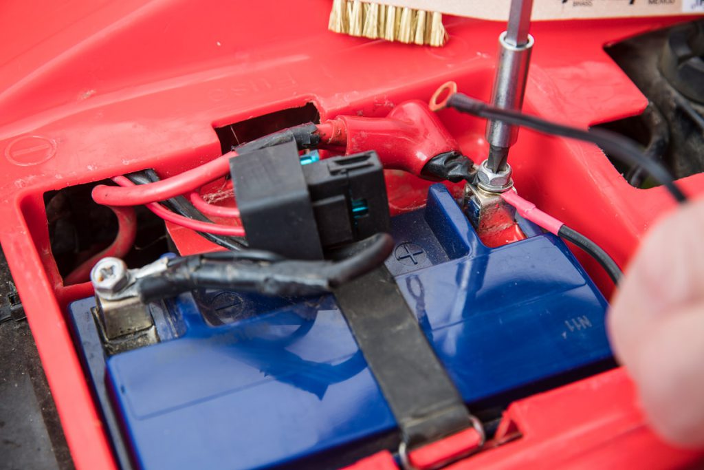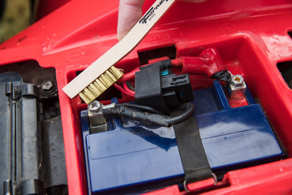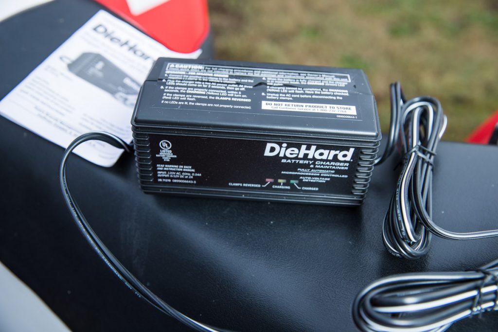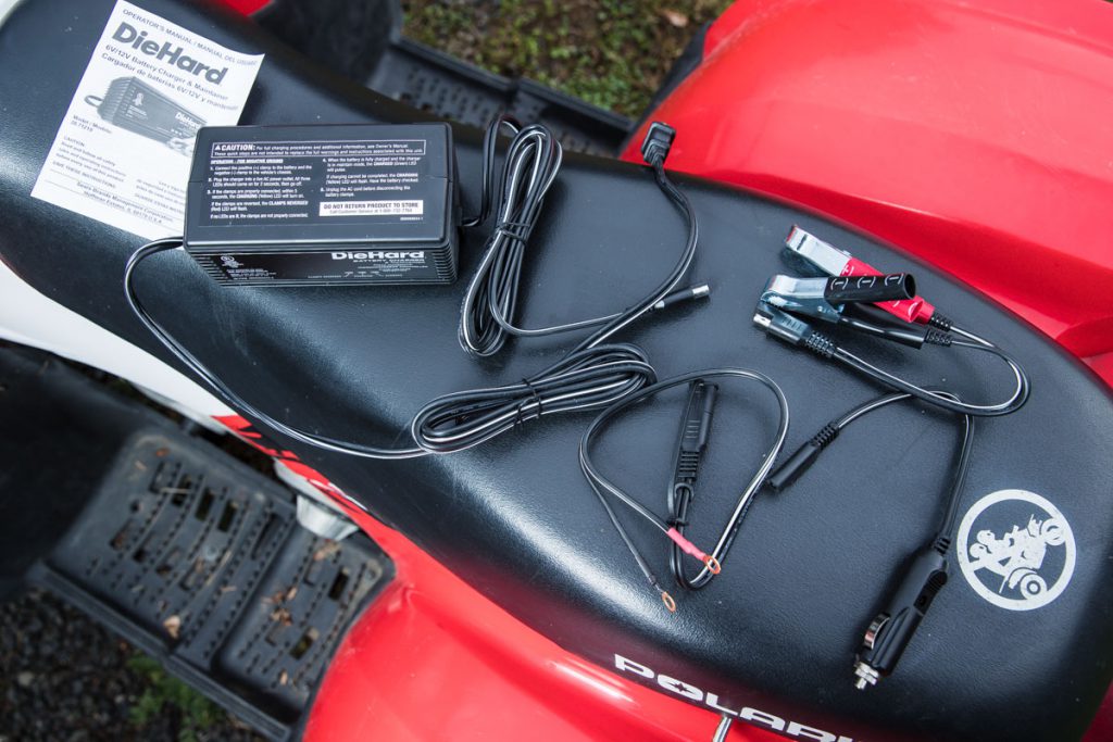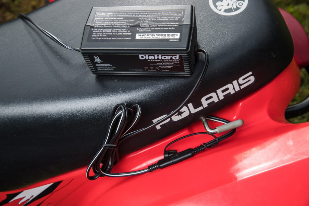 For demonstration purposes, we winterized a 12-volt ATV battery. Always consult your battery charger’s instruction manual to avoid injury to yourself or your equipment.
