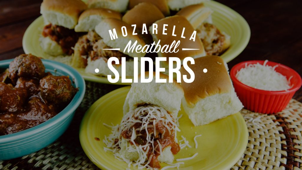 Once done, cut your dinner rolls in half. On the bottom half, place a handful of grated mozzarella along with one meatball (with sauce and onions). Then place the top half to complete the slider.