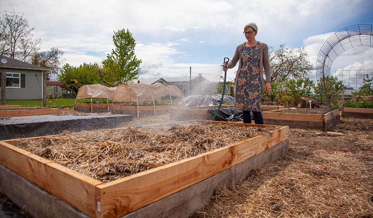 If you started seeds a month or so back, now is the time to plant them. You can also pick up your starts at Coastal. Greta is planting tomatoes, peppers, ambrosia, and watermelon.